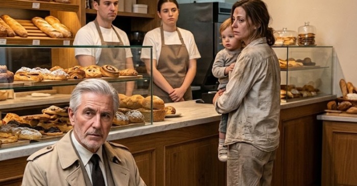 Viņa izskatījās tā, it kā nedēļām nebūtu kārtīgi gulējusi. Mētelis bija plāns, nodilis, pie piedurknēm izbalējis, un karājās uz viņas kā no citas dzīves palicis fragments. Zābaki bija saplaisājuši, šuves mitras. Rokās viņa turēja mazu meitenīti — varbūt četrus gadus vecu — ietītu izbalējušā zilā džemperī, galvu uzticīgi atbalstītu pret mātes plecu.