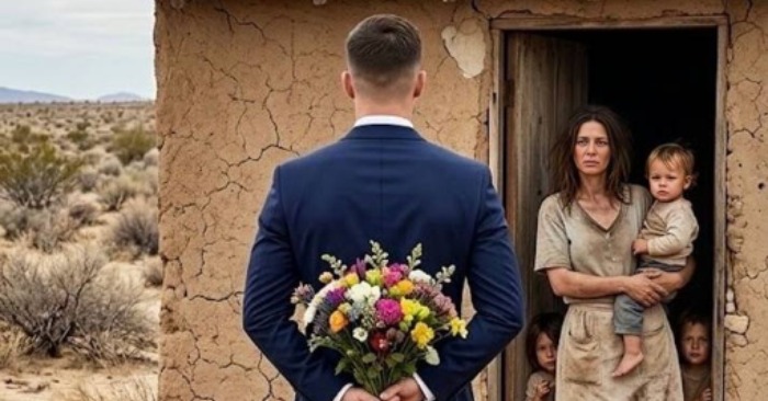 Viņš izkāpa ārā, rokā turēdams mežapuķu pušķi, ko bija nopircis pa ceļam.
