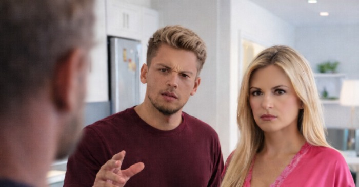 Tą akimirką vonioje nutilo vanduo. Spragtelėjimas. Po kelių sekundžių įėjo Andrei — šlapiais plaukais, su rankšluosčiu ant juosmens, visiškai nenutuokdamas, kad viskas jau sugriuvo.