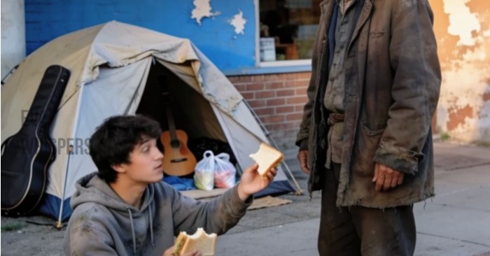 Senas vyras su nudėvėtais drabužiais vaikščiojo pirmyn atgal, tyliai klausinėdamas, ar kas nors neturi šiek tiek maisto.